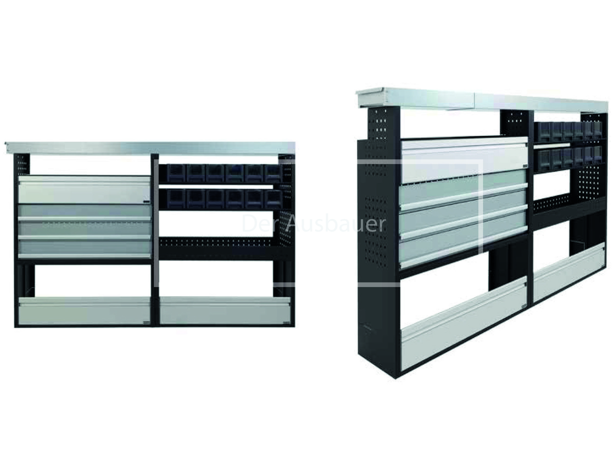 Provan 100 – 109 1946 x 1200 x 380mm 2 x Bodenfach mit Traverse, 3 x Schublade, 1 x Fachboden mit Aluklappe, 1 x Wanne, 12 x Lagerbox, 1 x Langgutwanne Vormontiert Montagematerial liegt bei           Provan – die Hausmarke vom Ausbauer für Fahrzeugregale in deinem Transporter     Provan bietet hochwertige Fahrzeugregale und Einrichtungen, die speziell für Transporter entwickelt wurden. Unsere Regalsysteme zeichnen sich durch herausragende Qualität und Funktionalität aus und bieten maximale Robustheit sowie eine perfekte Organisation für Ihren Transporter. Die Provan Regale werden fertig vormontiert geliefert und enthalten das passende Montagematerial sowie eine einfache Montageanleitung. Unsere Fahrzeugeinrichtungen bestehen aus einer gewichtsoptimierten Stahlkonstruktion, die Stabilität und Leichtigkeit vereint. Sie sind zudem pulverbeschichtet, um eine lange Lebensdauer zu gewährleisten.   Die Schubladen und Klappen bestehen aus Aluminium und die Kunststoffbehälter und Koffer stammen von dem renommierten deutschen Hersteller Auer Packaging.   Vertrauen Sie auf Provan, um Ihren Transporter effizient auszustatten und höchsten Ansprüchen gerecht zu werden. Eine Fahrzeugeinrichtung für Ihren Transporter                                 Citroen Berlingo Fahrzeugeinrichtung, Citroen Jumpy Fahrzeugeinrichtung, Citroen Jumper Fahrzeugeinrichtung, Citroen Nemo Fahrzeugeinrichtung, Dacia Dokker Fahrzeugeinrichtung, Fiat Doblo Cargo Fahrzeugeinrichtung, Fiat Scudo Fahrzeugeinrichtung, Fiat Ducato Fahrzeugeinrichtung, Fiat Fiorino Fahrzeugeinrichtung, Fiat Talento Fahrzeugeinrichtung, Ford Transit Courier Fahrzeugeinrichtung, Ford Connect Fahrzeugeinrichtung, Ford Custom Fahrzeugeinrichtung, Ford Transit Fahrzeugeinrichtung, Iveco Daily Fahrzeugeinrichtung, Hyundai H350 Fahrzeugeinrichtung, MAN TGE Fahrzeugeinrichtung, Mercedes Citan Fahrzeugeinrichtung, Mercedes Vito Fahrzeugeinrichtung, Mercedes Sprinter Fahrzeugeinrichtung, Maxus e-deliver 3 Fahrzeugeinrichtung, Maxus e-deliver 9 Fahrzeugeinrichtung, Maxus EV80 Fahrzeugeinrichtung, Nissan NV200 Fahrzeugeinrichtung, Nissan NV250 Fahrzeugeinrichtung, Nissan NV300 Primastar Fahrzeugeinrichtung, Nissan NV400 Interstar Fahrzeugeinrichtung, Opel Combo Fahrzeugeinrichtung, Opel Vivaro Fahrzeugeinrichtung, Opel Movano Fahrzeugeinrichtung, Peugeot Partner Fahrzeugeinrichtung, Peugeot Expert Fahrzeugeinrichtung, Peugeot Boxer Fahrzeugeinrichtung, Peugeot Bipper Fahrzeugeinrichtung, Renault Kangoo Fahrzeugeinrichtung, Renault Trafic Fahrzeugeinrichtung, Renault Master Fahrzeugeinrichtung, Toyota Proace Fahrzeugeinrichtung, Toyota Proace City Fahrzeugeinrichtung, VW Caddy Cargo Fahrzeugeinrichtung, VW T6.1 Fahrzeugeinrichtung, VW ID Cargo Fahrzeugeinrichtung, VW Crafter Fahrzeugeinrichtung, VW Caddy IV Fahrzeugeinrichtung, VW T6 Fahrzeugeinrichtung, VW T5 Fahrzeugeinrichtung