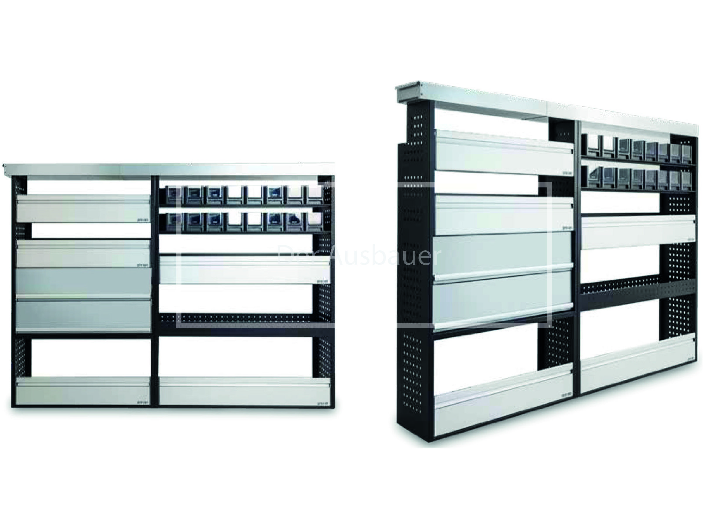Provan 5 – 7 2502 x 1550 x 380mm 2 x Bodenfach mit Aluklappe, 2 x Schublade, 3 x Fachboden mit Aluklappe, 16 x Lagerbox, 1 x Langgutwanne Vormontiert Montagematerial liegt bei           Provan – die Hausmarke vom Ausbauer für Fahrzeugregale in deinem Transporter     Provan bietet hochwertige Fahrzeugregale und Einrichtungen, die speziell für Transporter entwickelt wurden. Unsere Regalsysteme zeichnen sich durch herausragende Qualität und Funktionalität aus und bieten maximale Robustheit sowie eine perfekte Organisation für Ihren Transporter. Die Provan Regale werden fertig vormontiert geliefert und enthalten das passende Montagematerial sowie eine einfache Montageanleitung. Unsere Fahrzeugeinrichtungen bestehen aus einer gewichtsoptimierten Stahlkonstruktion, die Stabilität und Leichtigkeit vereint. Sie sind zudem pulverbeschichtet, um eine lange Lebensdauer zu gewährleisten.   Die Schubladen und Klappen bestehen aus Aluminium und die Kunststoffbehälter und Koffer stammen von dem renommierten deutschen Hersteller Auer Packaging.   Vertrauen Sie auf Provan, um Ihren Transporter effizient auszustatten und höchsten Ansprüchen gerecht zu werden. Eine Fahrzeugeinrichtung für Ihren Transporter                             Citroen Berlingo Fahrzeugeinrichtung, Citroen Jumpy Fahrzeugeinrichtung, Citroen Jumper Fahrzeugeinrichtung, Citroen Nemo Fahrzeugeinrichtung, Dacia Dokker Fahrzeugeinrichtung, Fiat Doblo Cargo Fahrzeugeinrichtung, Fiat Scudo Fahrzeugeinrichtung, Fiat Ducato Fahrzeugeinrichtung, Fiat Fiorino Fahrzeugeinrichtung, Fiat Talento Fahrzeugeinrichtung, Ford Transit Courier Fahrzeugeinrichtung, Ford Connect Fahrzeugeinrichtung, Ford Custom Fahrzeugeinrichtung, Ford Transit Fahrzeugeinrichtung, Iveco Daily Fahrzeugeinrichtung, Hyundai H350 Fahrzeugeinrichtung, MAN TGE Fahrzeugeinrichtung, Mercedes Citan Fahrzeugeinrichtung, Mercedes Vito Fahrzeugeinrichtung, Mercedes Sprinter Fahrzeugeinrichtung, Maxus e-deliver 3 Fahrzeugeinrichtung, Maxus e-deliver 9 Fahrzeugeinrichtung, Maxus EV80 Fahrzeugeinrichtung, Nissan NV200 Fahrzeugeinrichtung, Nissan NV250 Fahrzeugeinrichtung, Nissan NV300 Primastar Fahrzeugeinrichtung, Nissan NV400 Interstar Fahrzeugeinrichtung, Opel Combo Fahrzeugeinrichtung, Opel Vivaro Fahrzeugeinrichtung, Opel Movano Fahrzeugeinrichtung, Peugeot Partner Fahrzeugeinrichtung, Peugeot Expert Fahrzeugeinrichtung, Peugeot Boxer Fahrzeugeinrichtung, Peugeot Bipper Fahrzeugeinrichtung, Renault Kangoo Fahrzeugeinrichtung, Renault Trafic Fahrzeugeinrichtung, Renault Master Fahrzeugeinrichtung, Toyota Proace Fahrzeugeinrichtung, Toyota Proace City Fahrzeugeinrichtung, VW Caddy Cargo Fahrzeugeinrichtung, VW T6.1 Fahrzeugeinrichtung, VW ID Cargo Fahrzeugeinrichtung, VW Crafter Fahrzeugeinrichtung, VW Caddy IV Fahrzeugeinrichtung, VW T6 Fahrzeugeinrichtung, VW T5 Fahrzeugeinrichtung