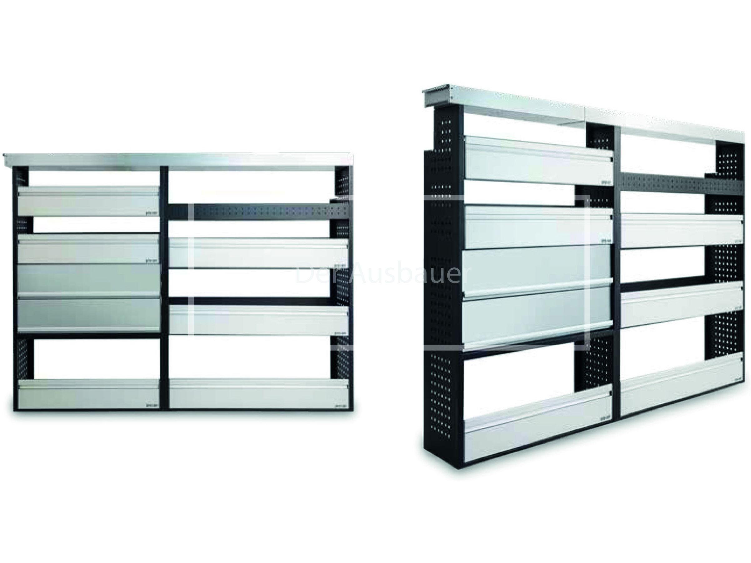 Provan 5 – 8A 1946 x 1550 x 380mm 2 x Bodenfach mit Aluklappe, 2 x Schublade, 4 x Fachboden mit Aluklappe, 1 x Langgutwanne Vormontiert Montagematerial liegt bei           Provan – die Hausmarke vom Ausbauer für Fahrzeugregale in deinem Transporter     Provan bietet hochwertige Fahrzeugregale und Einrichtungen, die speziell für Transporter entwickelt wurden. Unsere Regalsysteme zeichnen sich durch herausragende Qualität und Funktionalität aus und bieten maximale Robustheit sowie eine perfekte Organisation für Ihren Transporter. Die Provan Regale werden fertig vormontiert geliefert und enthalten das passende Montagematerial sowie eine einfache Montageanleitung. Unsere Fahrzeugeinrichtungen bestehen aus einer gewichtsoptimierten Stahlkonstruktion, die Stabilität und Leichtigkeit vereint. Sie sind zudem pulverbeschichtet, um eine lange Lebensdauer zu gewährleisten.   Die Schubladen und Klappen bestehen aus Aluminium und die Kunststoffbehälter und Koffer stammen von dem renommierten deutschen Hersteller Auer Packaging.   Vertrauen Sie auf Provan, um Ihren Transporter effizient auszustatten und höchsten Ansprüchen gerecht zu werden. Eine Fahrzeugeinrichtung für Ihren Transporter                             Citroen Berlingo Fahrzeugeinrichtung, Citroen Jumpy Fahrzeugeinrichtung, Citroen Jumper Fahrzeugeinrichtung, Citroen Nemo Fahrzeugeinrichtung, Dacia Dokker Fahrzeugeinrichtung, Fiat Doblo Cargo Fahrzeugeinrichtung, Fiat Scudo Fahrzeugeinrichtung, Fiat Ducato Fahrzeugeinrichtung, Fiat Fiorino Fahrzeugeinrichtung, Fiat Talento Fahrzeugeinrichtung, Ford Transit Courier Fahrzeugeinrichtung, Ford Connect Fahrzeugeinrichtung, Ford Custom Fahrzeugeinrichtung, Ford Transit Fahrzeugeinrichtung, Iveco Daily Fahrzeugeinrichtung, Hyundai H350 Fahrzeugeinrichtung, MAN TGE Fahrzeugeinrichtung, Mercedes Citan Fahrzeugeinrichtung, Mercedes Vito Fahrzeugeinrichtung, Mercedes Sprinter Fahrzeugeinrichtung, Maxus e-deliver 3 Fahrzeugeinrichtung, Maxus e-deliver 9 Fahrzeugeinrichtung, Maxus EV80 Fahrzeugeinrichtung, Nissan NV200 Fahrzeugeinrichtung, Nissan NV250 Fahrzeugeinrichtung, Nissan NV300 Primastar Fahrzeugeinrichtung, Nissan NV400 Interstar Fahrzeugeinrichtung, Opel Combo Fahrzeugeinrichtung, Opel Vivaro Fahrzeugeinrichtung, Opel Movano Fahrzeugeinrichtung, Peugeot Partner Fahrzeugeinrichtung, Peugeot Expert Fahrzeugeinrichtung, Peugeot Boxer Fahrzeugeinrichtung, Peugeot Bipper Fahrzeugeinrichtung, Renault Kangoo Fahrzeugeinrichtung, Renault Trafic Fahrzeugeinrichtung, Renault Master Fahrzeugeinrichtung, Toyota Proace Fahrzeugeinrichtung, Toyota Proace City Fahrzeugeinrichtung, VW Caddy Cargo Fahrzeugeinrichtung, VW T6.1 Fahrzeugeinrichtung, VW ID Cargo Fahrzeugeinrichtung, VW Crafter Fahrzeugeinrichtung, VW Caddy IV Fahrzeugeinrichtung, VW T6 Fahrzeugeinrichtung, VW T5 Fahrzeugeinrichtung